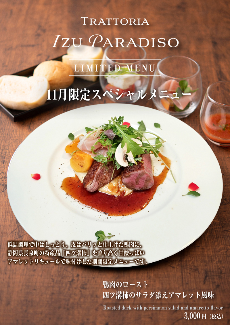 “海と山”豊かな自然に囲まれた伊豆ならではの旬食材を活かした生地から手づくりの本格ピッツァをはじめ、こだわりのイタリア料理をお楽しみください。