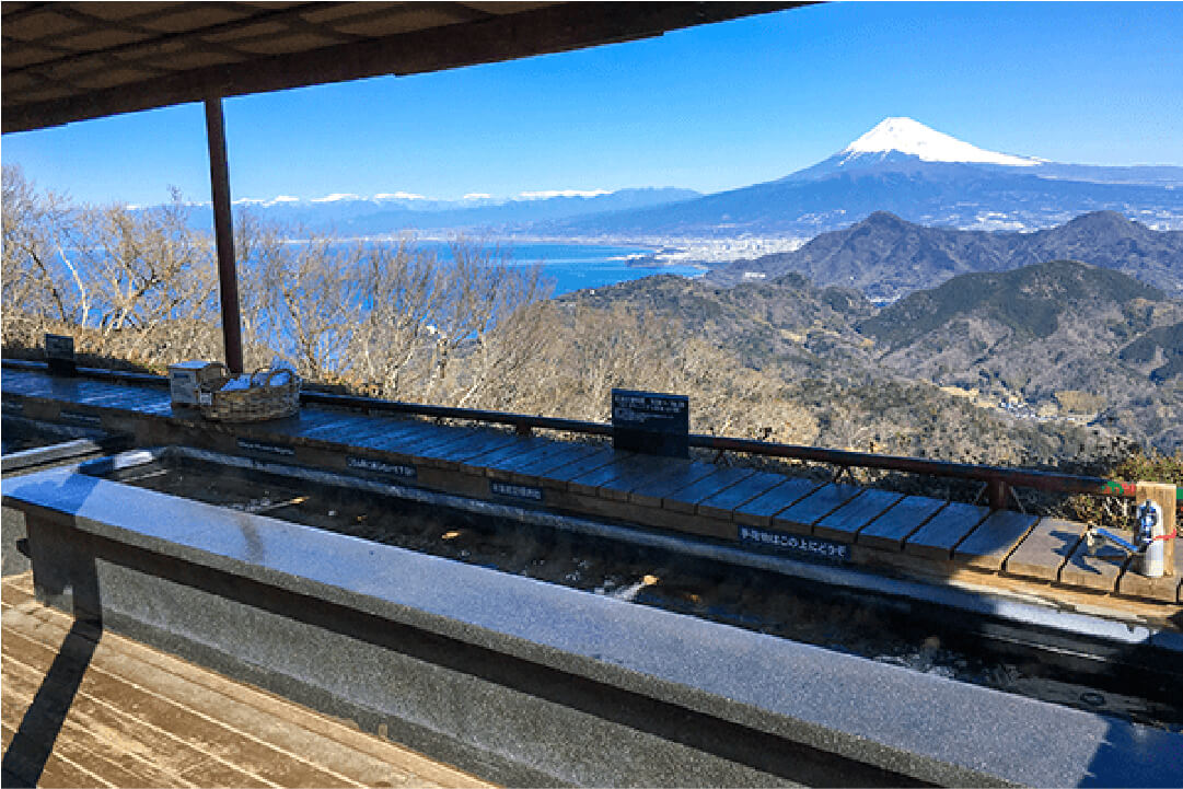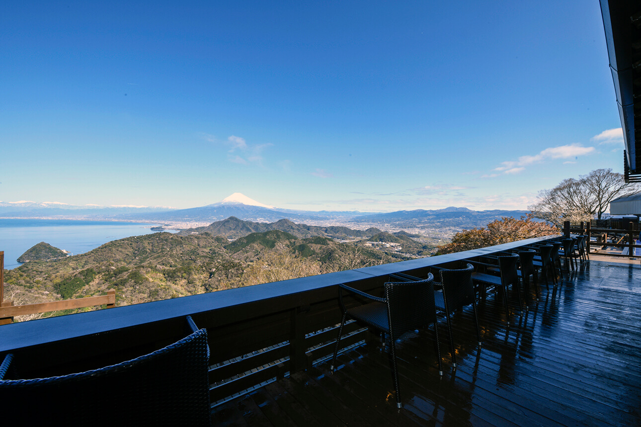 富士山と駿河湾の眺望を眼下に浮遊感が楽しめる絶景スポット。