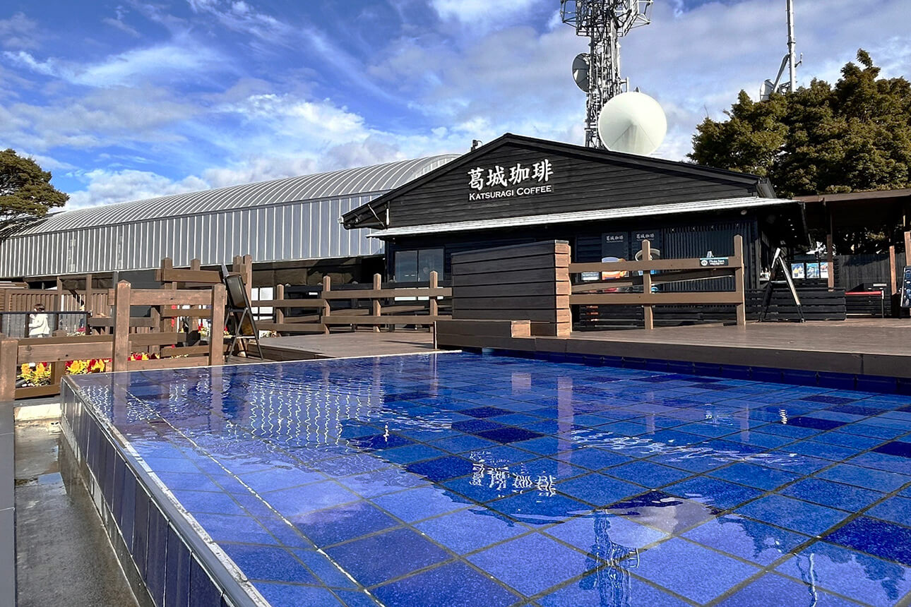 テラス周囲に水盤を配置し、360度パノラマの絶景と浮遊感を体感できる新スポット。