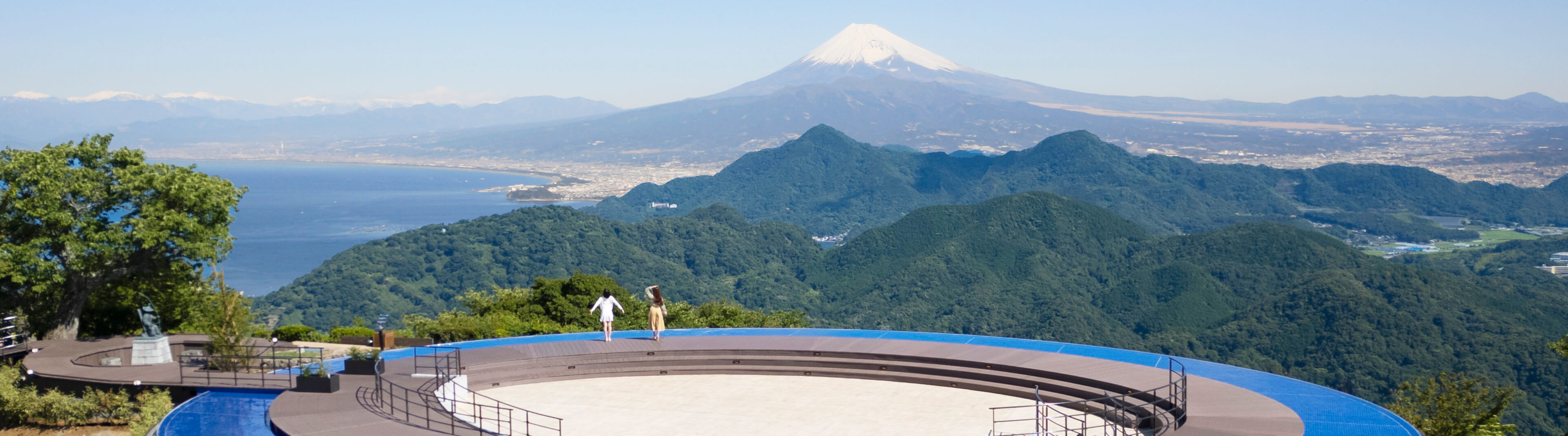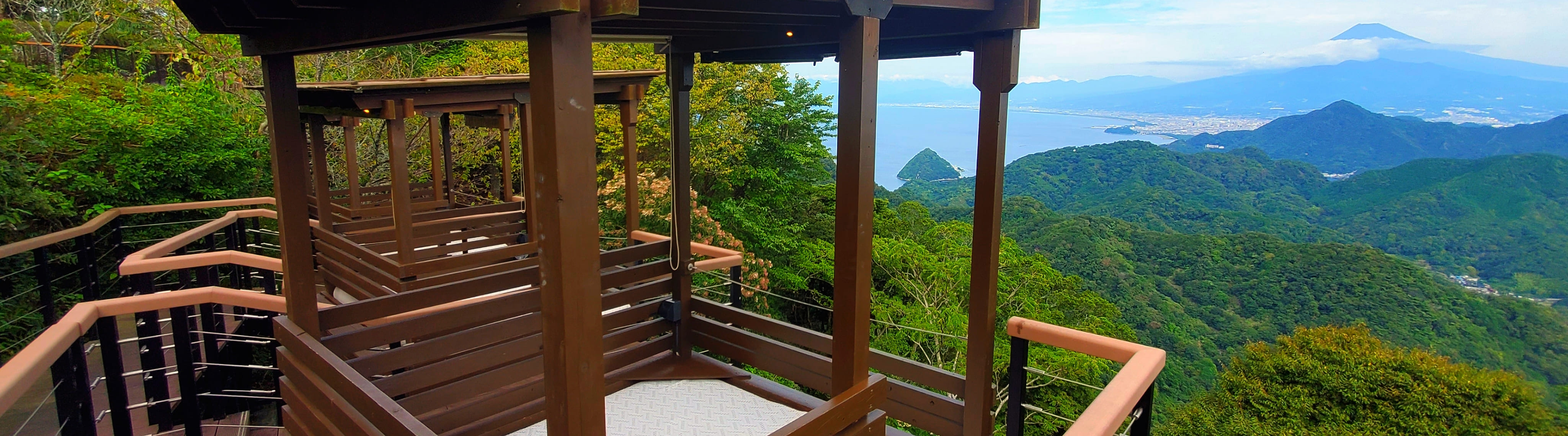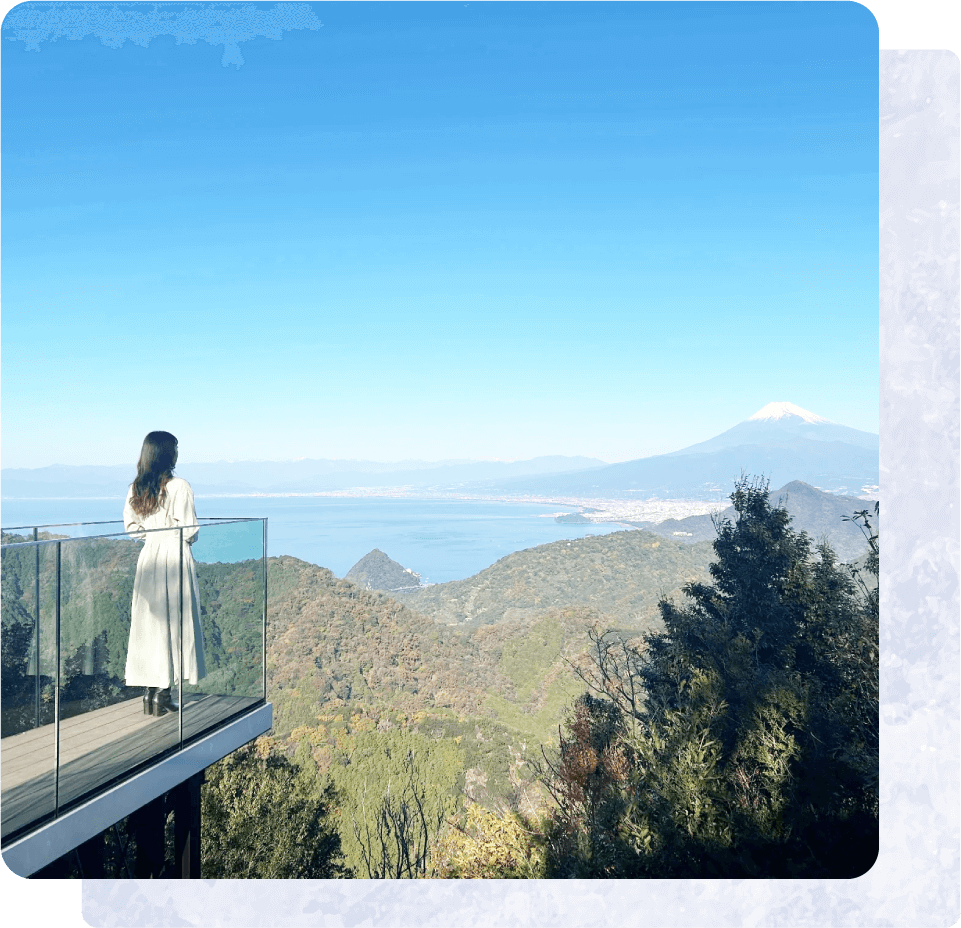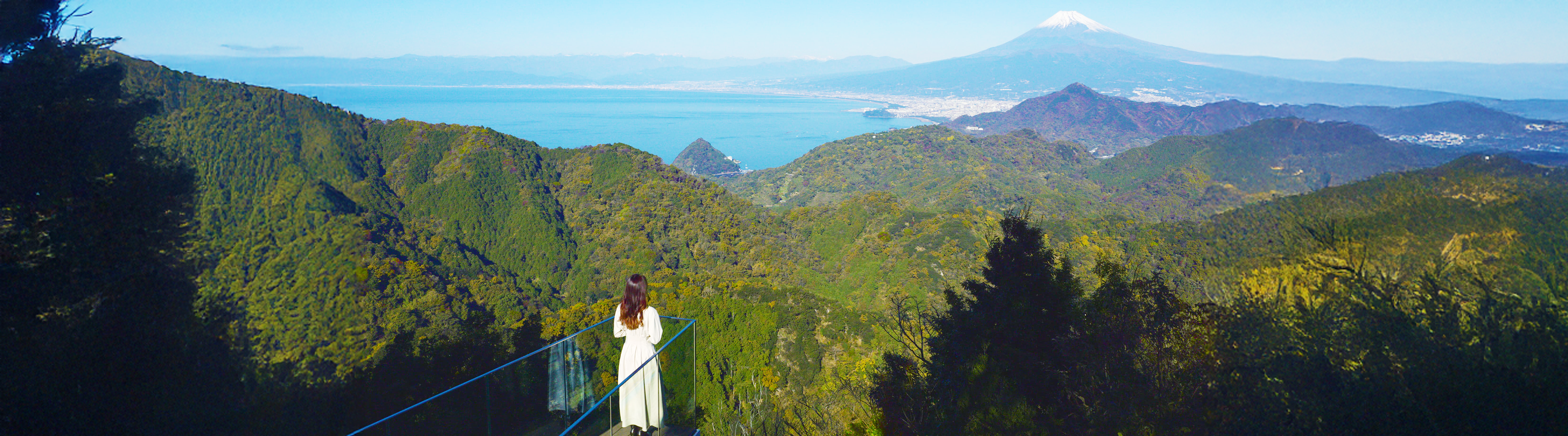 富士山と駿河湾の眺望を眼下に浮遊感が楽しめる絶景スポット。