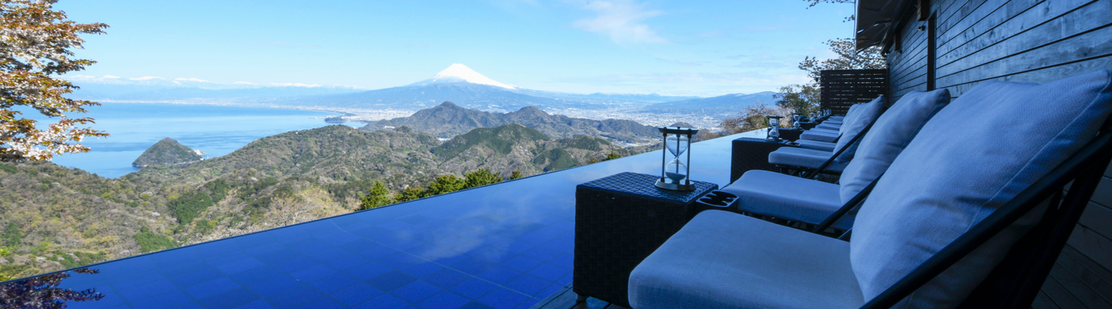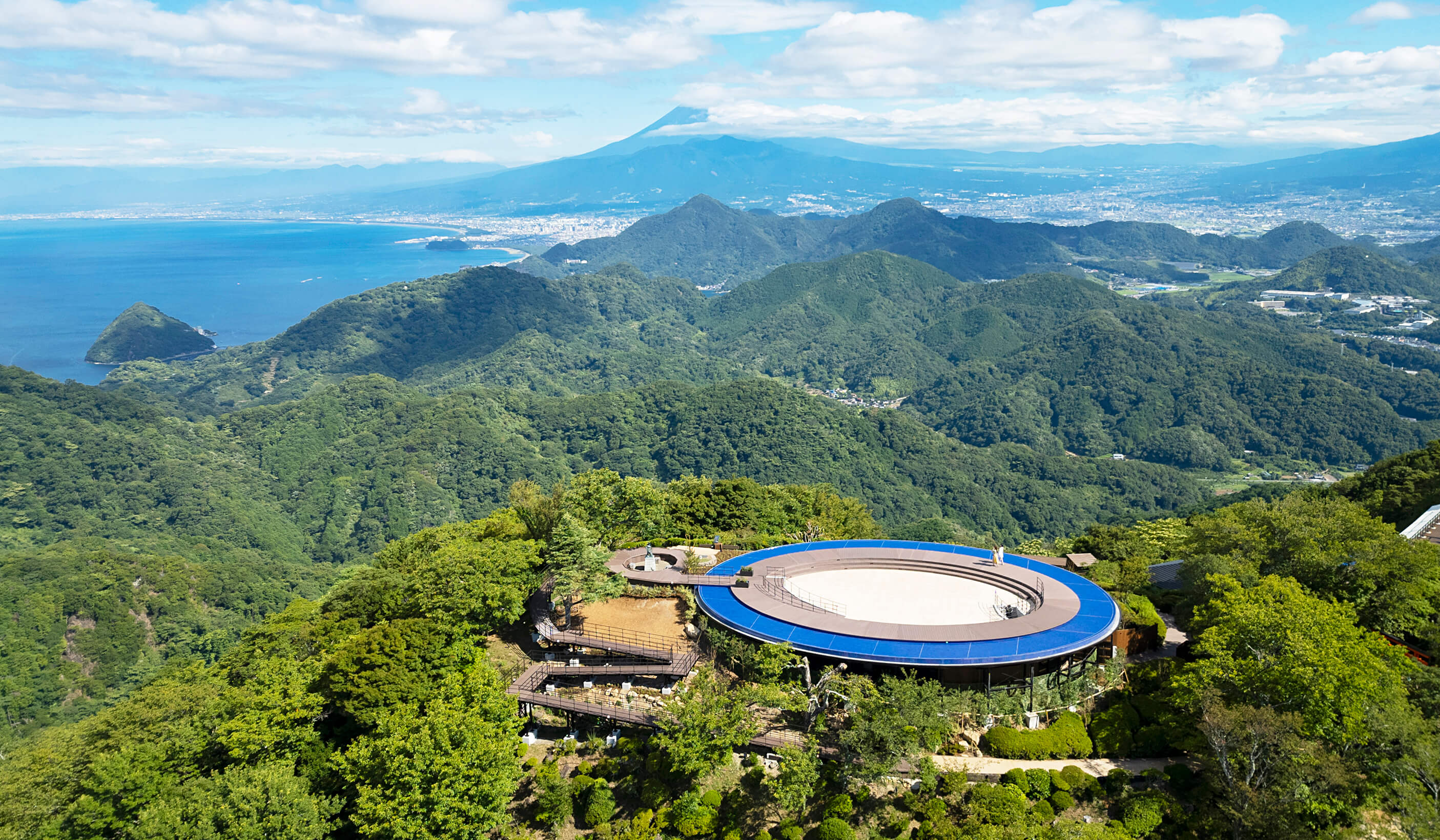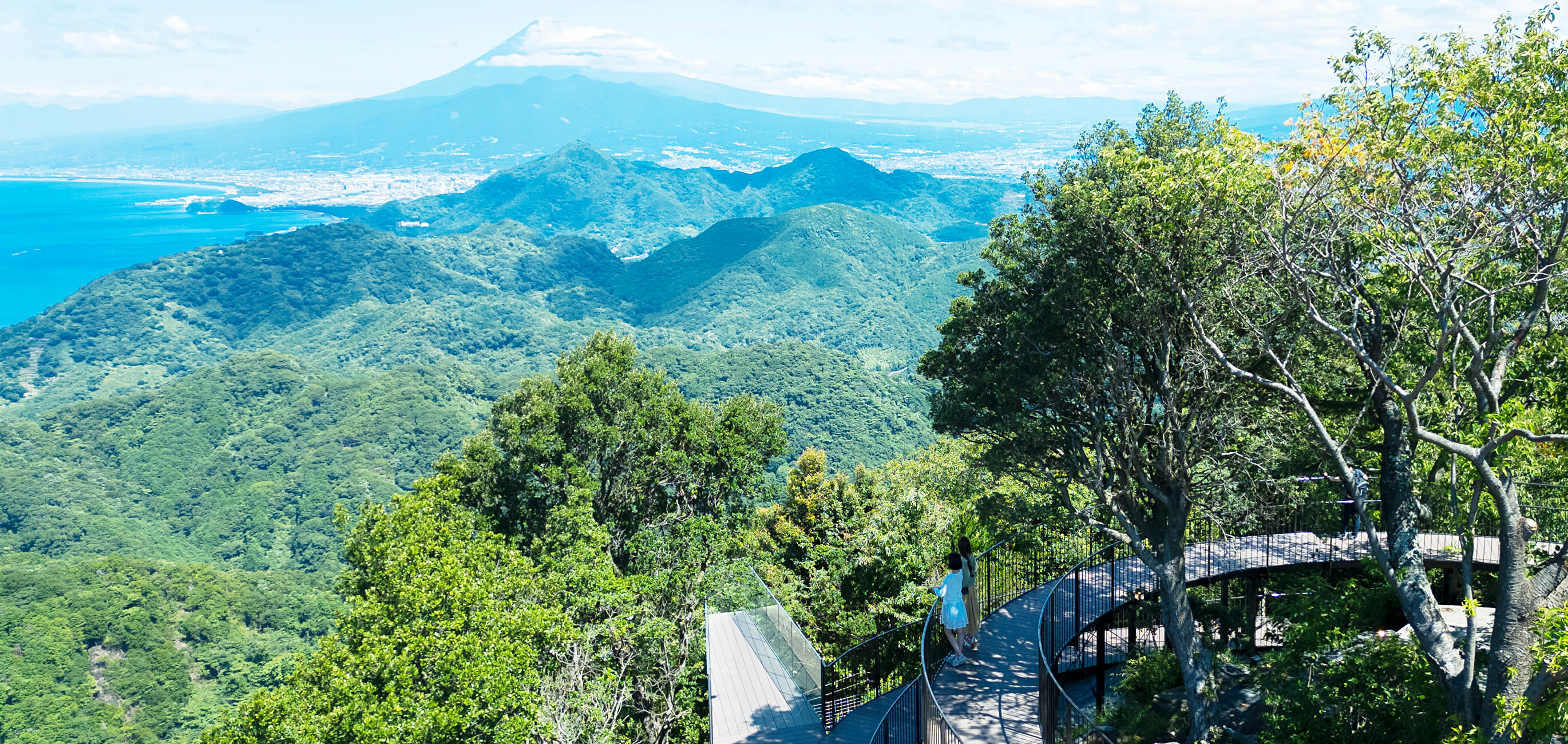 富士山と駿河湾の眺望を眼下に浮遊感が楽しめる絶景スポット。