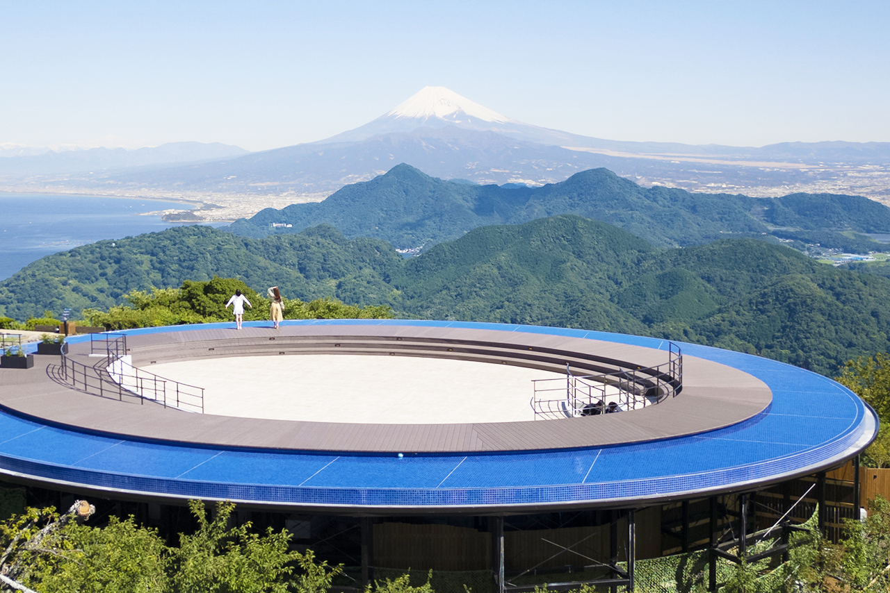 富士山、駿河湾、箱根、天城の360度の大パノラマが広がります。