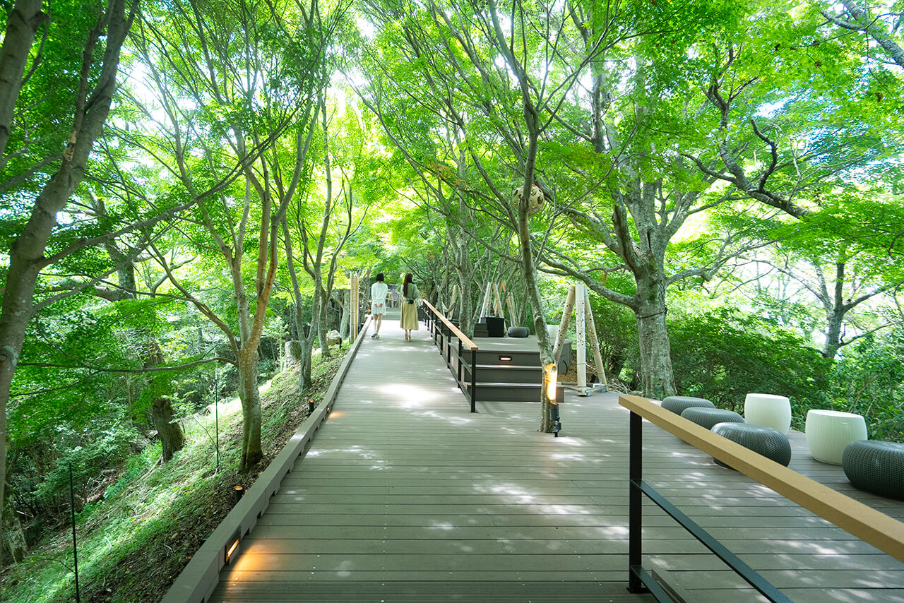 夏は新緑、秋は紅葉に彩られるもみじの回廊「フォレストウォーク」は、
