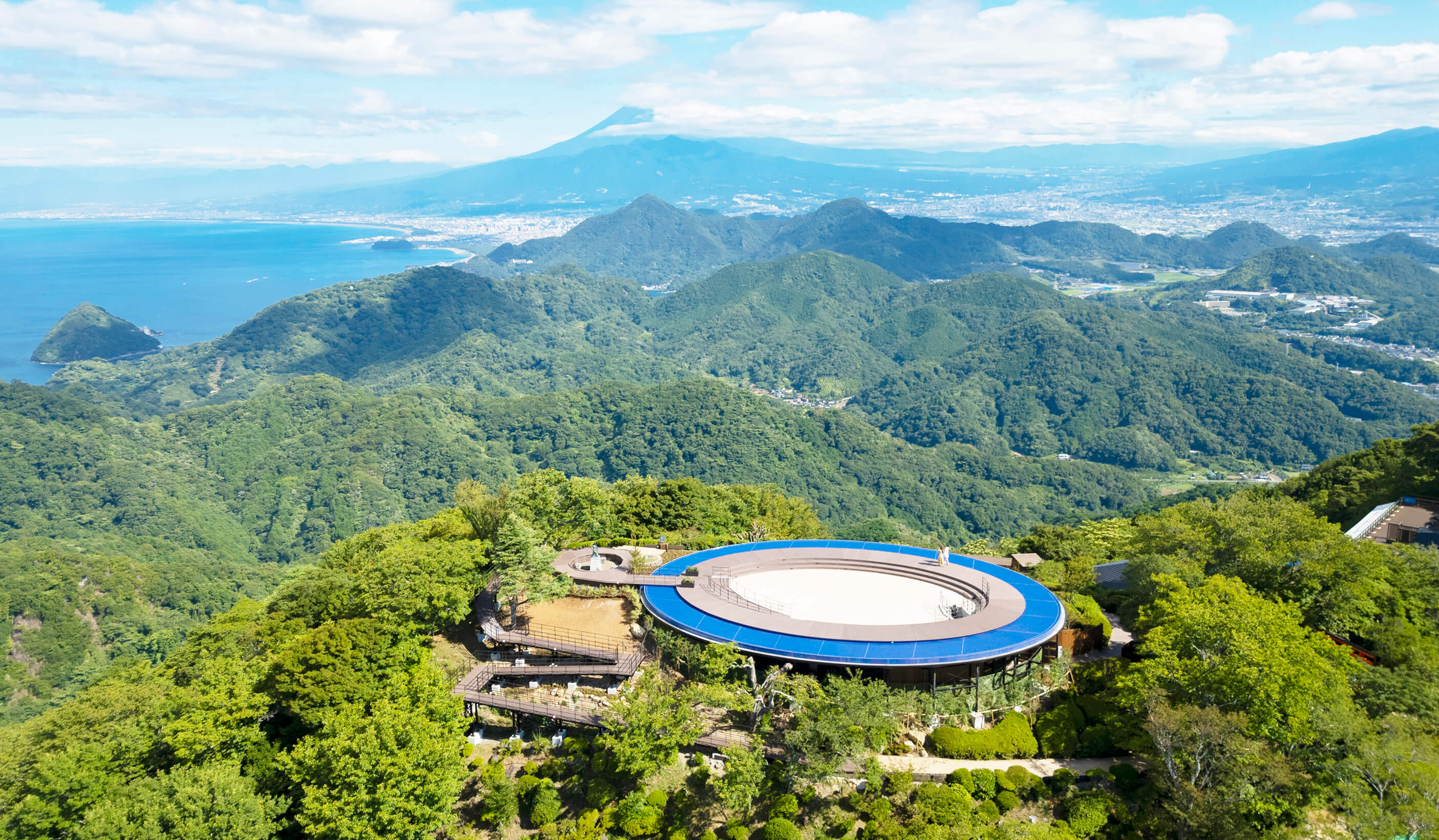 富士山、駿河湾、箱根、天城の360度の大パノラマが広がります。