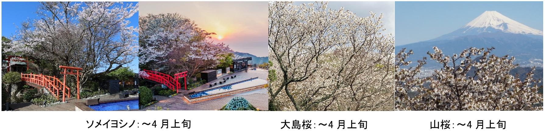 ロープウェイ山頂『碧テラス』では4月上旬頃までソメイヨシノ、大島桜、山桜が咲き、4月から5月に開花するツツジやサツキなどの季節の花々が、雪化粧した富士山、南アルプスの絶景とともにお楽しみいただけます。2025年夏にリニューアルオープンした『アクアリング』に向かうバリアフリールートではツツジをご覧いただきながら散策をお楽しみいただけます。