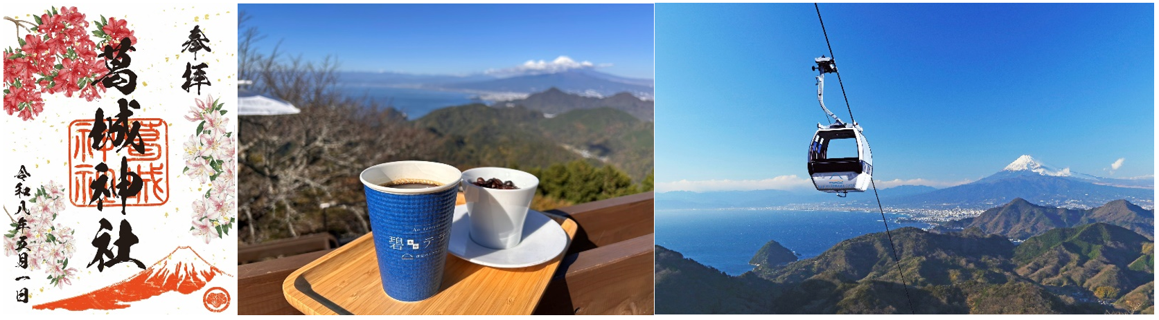 平安時代からの歴史がある葛城神社の「御朱印」、施設利用料金(ロープウェイ往復乗車券付き)、更に葛城珈琲オリジナルドリップコーヒーがセットになった期間限定プランを販売します。2026年1月に新登場した葛城神社の御朱印が、期間限定で碧テラスに咲くツツジをイメージしたデザインになって登場いたします。葛城神社で参拝し、葛城珈琲で暖かいコーヒーをお召し上がりください。コーヒーはコクの深いオリジナルブレンド「碧テラスブレンド」と、口あたりが軽く香り豊かな「オーガニックブレンド」よりお選びいただけます。