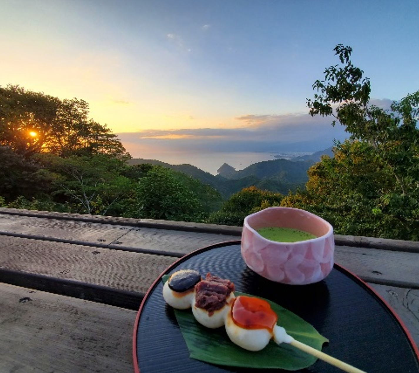 - かつらぎ茶寮の人気メニュー「焼き団子」がイベント期間限定で、くるみみそ、つぶあん、みたらしの3種の餡を一度に味わえる特別メニューとなり、店内で点てる静岡抹茶をセットにして販売いたします。
