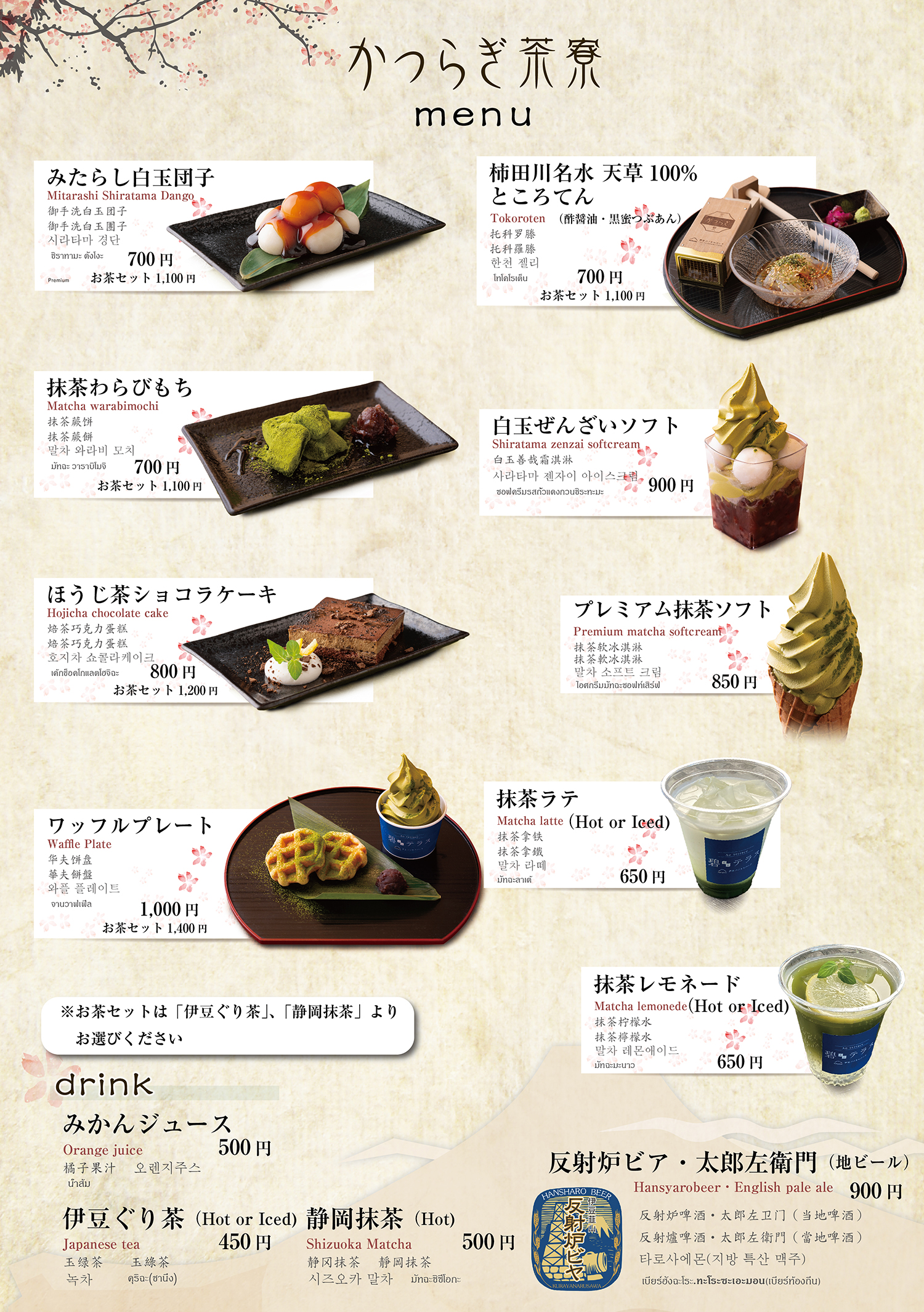 山頂エリア・碧テラスにある「かつらぎ茶寮」では、駿河湾と富士山の絶景を眺めながら軽食やお茶、スイーツなどが味わえます。