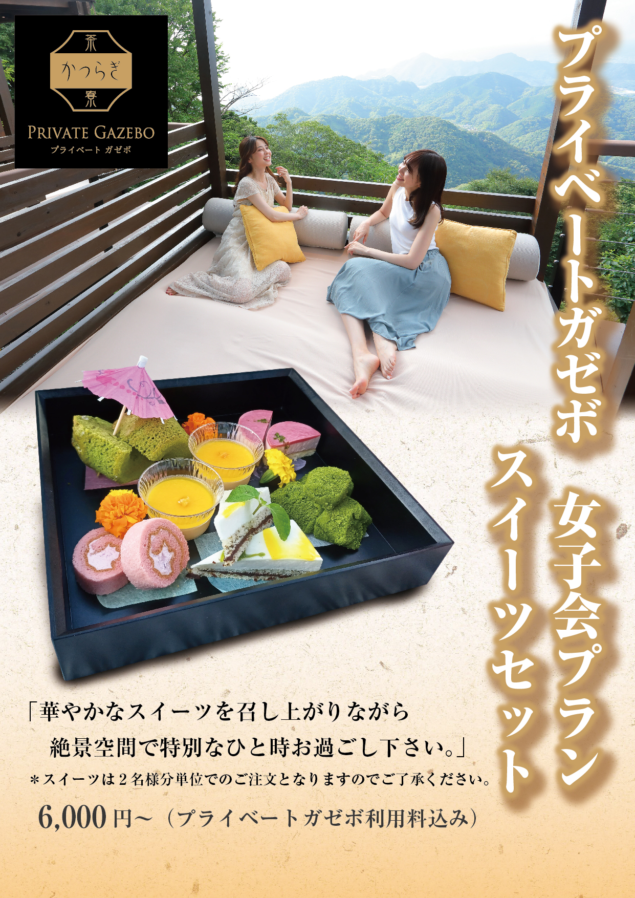 山頂エリア・碧テラスにある「かつらぎ茶寮」では、駿河湾と富士山の絶景を眺めながら軽食やお茶、スイーツなどが味わえます。
